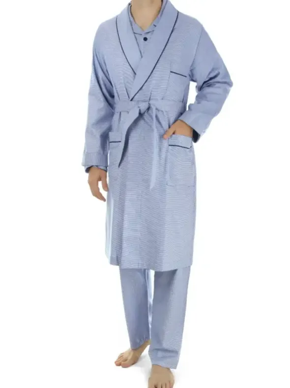 In edlem, kleinteiligem Jaquardmuster – der luxuriöse Morgenmantel Lord in Vollzwirn-Twill aus 100% Baumwolle. Die klassische Robe mit edlem Schalkragen, aufgesetzten Taschen und edler Paspelierung lässt bezüglich Tragekomfort und Verarbeitungqualität keine Wünsche offen. Der griffige und pflegeleichte Twill machen diesen Mantel zum treuen Begleiter in der Freizeit.