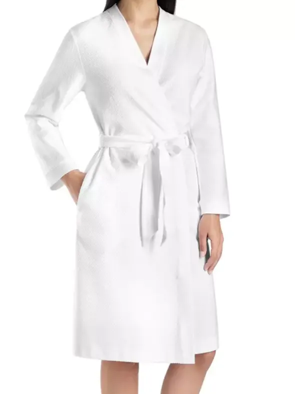 Leichter Damen Bade- oder Morgenmantel aus Waffelpiquet in zurückhaltender Kimonoform. Der HANRO Mantel aus der Serie Robe Selection ist mit einem Band zu schließen und verfügt über seitliche Eingrifftaschen.