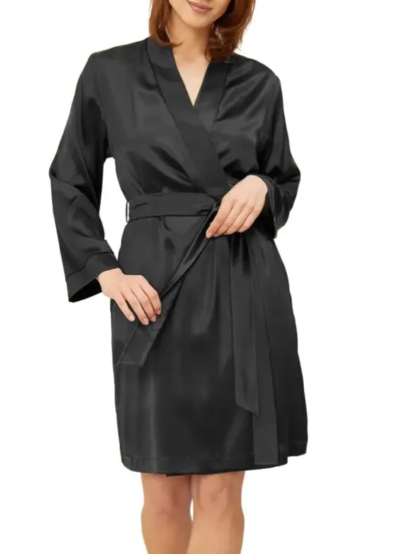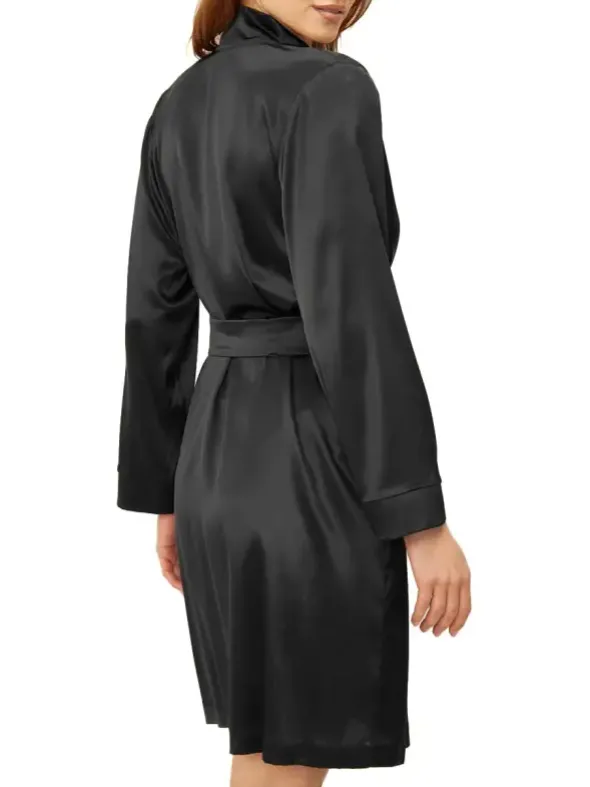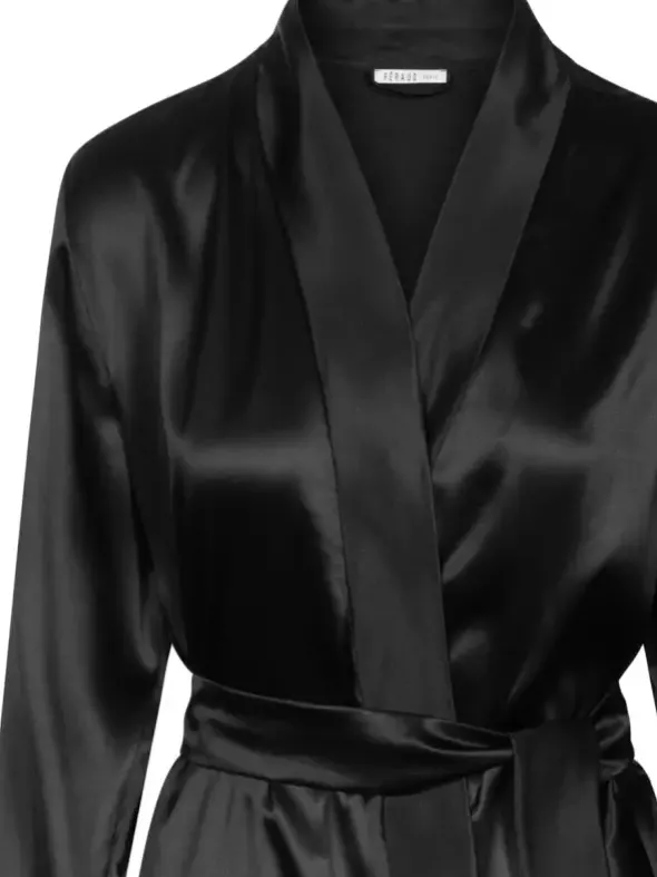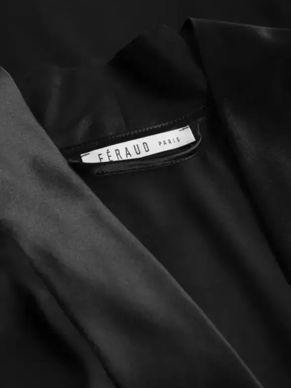 Für einen eleganten Auftritt zu jeder Tageszeit sorgt der Wickelmantel von Féraud aus luxuriöser Seide. Diese ist aus biologischer Herkunft und GOTS-zertifiziert. Der klassische Schnitt mit Schalkragen und Eingrifftaschen wird durch das dezente Bindeband mit Schlaufen abgerundet. Seien Sie sich einem außergewöhnlich glattem und fließendem Tragegefühl gewiss. Für ein angenehm flexibles Gewebe sorgt zudem ein Hauch Elasthan. Der Mantel ist circa 95cm lang, ein aufgesticktes Logodetail am Ärmel zeugt von Liebe zum Detail.