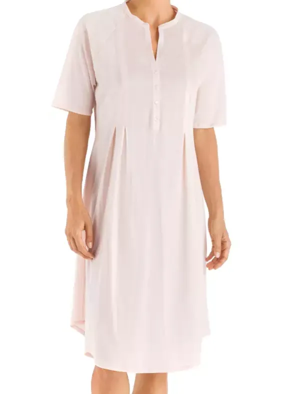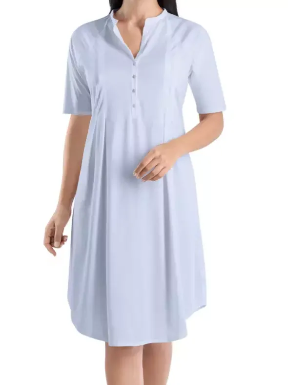 Elegantes Damen Nachthemd kurzarm mit Knopfleiste aus der HANRO Nachtwäsche Serie Cotton Deluxe. Das Damen Nightdress aus 100% mercerisierter Pima-Baumwolle überzeugt durch ein besonders leichtes Tragegefühl, fließender Fall und einen natürlichen Glanz.