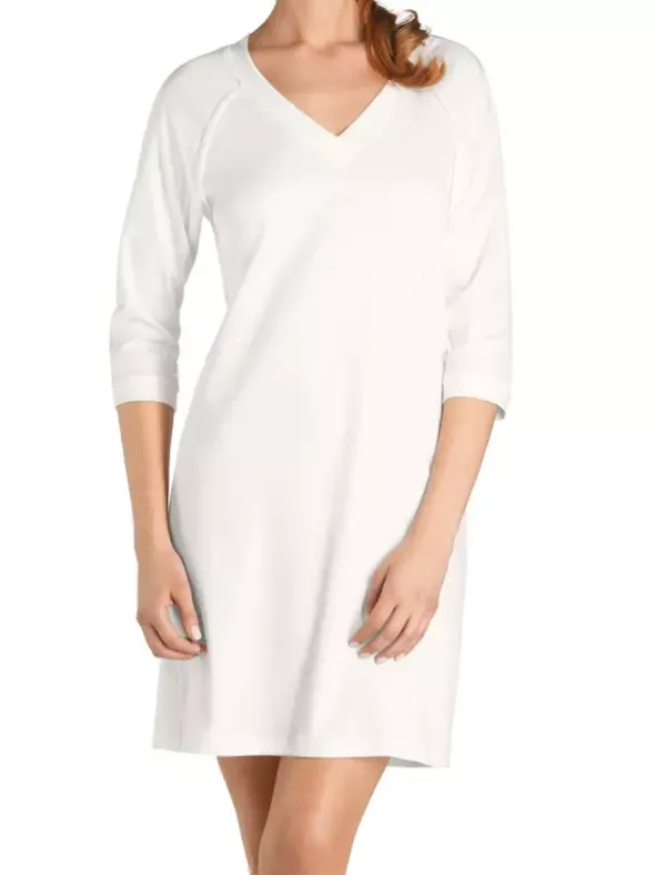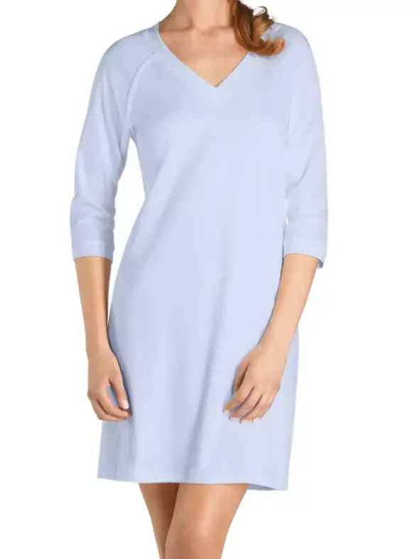 Zurückhaltendes Nachthemd mit 3/4 Armen aus der HANRO Nachtwäscheserie Pure Essence. Besonders weicher und blickdichter Baumwollinterlock in mercerisierter Qualität bietet Ihnen einen komfortablen und geborgenen Tragekomfort. Der moderne V-Ausschnitt und die leichte Taillierung umschmeicheln die weibliche Silhouette und verleihen einen modernen Look. Ebenso die Ärmel im Raglan-Stil.