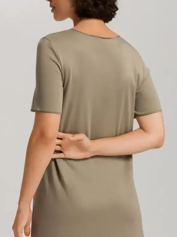 Das Cotton Silk Nachthemd Kurzarm von HANRO ist eine Ode an die Eleganz und den Komfort. Dieses klassische Nachthemd, gefertigt aus 100% schimmernder Baumwolle und in Österreich produziert, ist ein Meisterwerk der Stoffveredelung. Die feinen Seideneinfassungen am modischen V-Ausschnitt, den Ärmelabschlüssen und am Saum verleihen ihm eine luxuriöse Note, während die A-Linie und der Halbarm eine feminin schmeichelhafte Silhouette schaffen. Der merzerisierte Baumwollinterlock sorgt nicht nur für einen subtilen Glanz, sondern auch für verbesserte Widerstandsfähigkeit und Langlebigkeit des Gewebes. Dieses Nachthemd ist ideal für Frauen, die nachts keine Kompromisse bei Stil oder Komfort eingehen möchten.