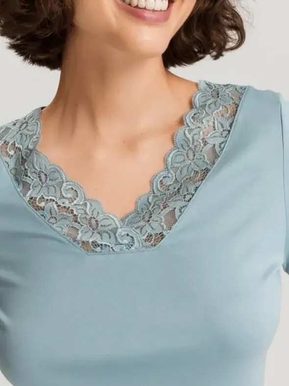 Dieses 130 cm lange Kurzarm-Nachthemd aus weichem 100 % Baumwoll-Interlock ist der Inbegriff von Luxus und Komfort. Der feine Stoff fällt sanft und umschmeichelt den Körper, während die zarte Spitze am Dekolleté dem Nachthemd eine feminine und elegante Note verleiht. Das klassische Design bietet eine stilvolle Mischung aus Tradition und zeitloser Schönheit, ideal für eine erholsame Nachtruhe. Hergestellt aus hochwertigster merzerisierter Baumwolle, garantiert es höchsten Tragekomfort und eine perfekte Passform. Kombiniert mit einem passenden Slip aus der Serie wird der Look rundum harmonisch und verleiht Ihnen ein Gefühl von Luxus, das den ganzen Tag anhält.