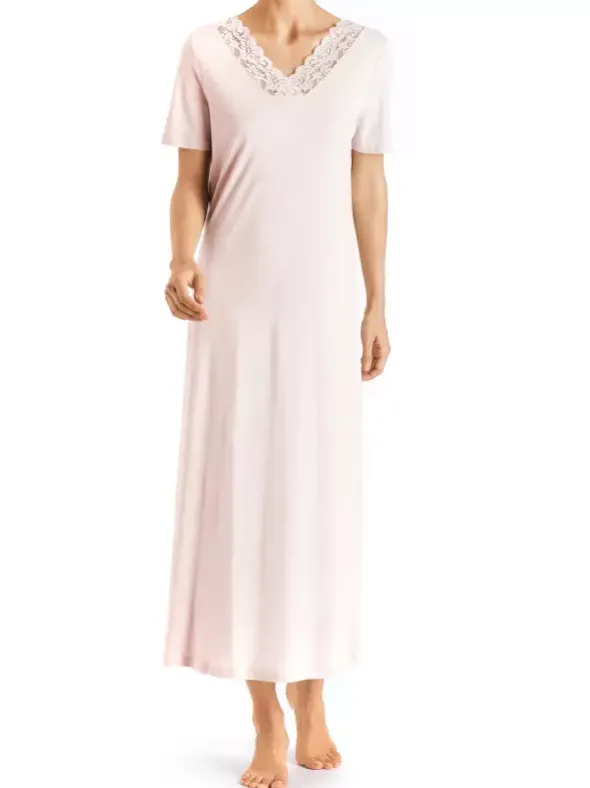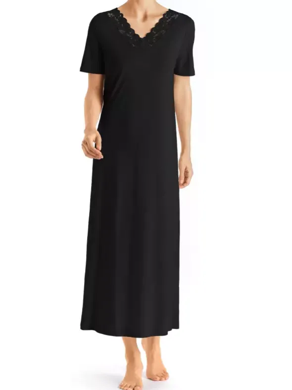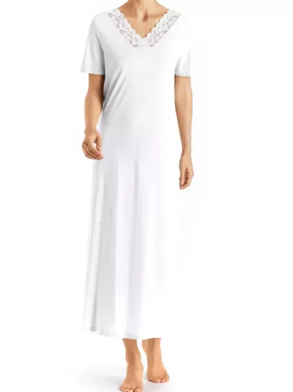 Das kurzärmlige Nachthemd aus der Serie Moments von HANRO ist das Must-have dieser Serie. Der neue Basic-Style verzaubert mit einer Maxi-Länge von 130 cm. Spielerisch schmeichelt die Wäsche aus sanft fließendem, merzerisiertem Baumwoll-Interlock der Figur. Zudem ist ein hervorragendes Tragegefühl gegeben. Und das Beste: Ein schmaler, sehr eleganter Spitzenbesatz vollendet die Nachtwäsche.
