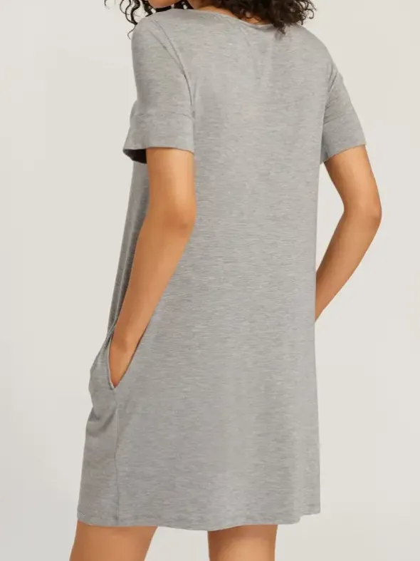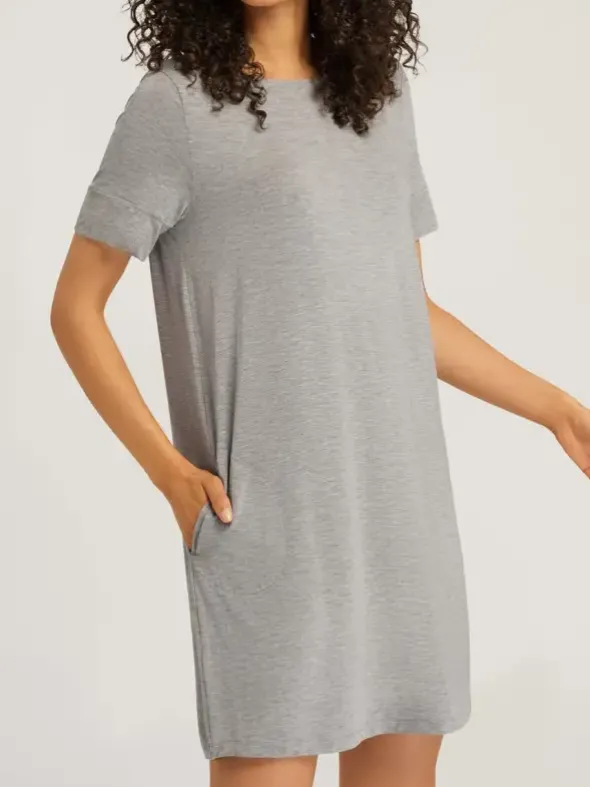 Die beliebte Serie Natural Elegance von HANRO besticht in dieser Saison mit neu überarbeiteten, zeitlosen Designs zum Schlafen und Relaxen. Hier das legere Nachhemd mit breitem Rundhalsausschnitt und Eingrifftaschen. Der komfortable Single-Jersey aus hautfreundlicher Viskose besticht in einer modernen Melangeoptik und mit seinen temperatur- und feuchtigkeitsregulierenden Eigenschaften. Die knieumschmeichelnde Länge von 90cm verspricht maximale Bewegungsfreiheit.