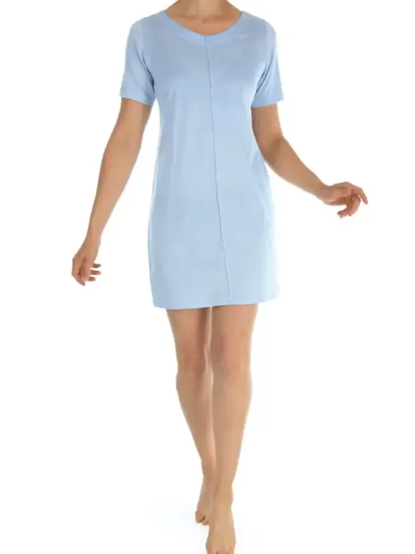 Das bequeme Jersey-Nachthemd Noemi von NOVILA ist der ideale Begleiter für erholsame Nächte. Es besteht aus 100% Baumwolle in Feinzwirn, welches in edlem Jaquard-Muster gearbeitet wurde. Die besonders glatte und hautsympathische Oberfläche ergänzt sich wunderbar mit der knieumschmeichelnden Länge und erzeugt somit besten Tragekomfort. Eine dekorative Biesennaht im Vorderteil sorgt für das gewisse Extra. NOVILA steht für exquisite Verarbeitung und sorgfältig ausgewählte Rohstoffe – überzeugen ie sich selbst von dieser kompromisslos gemütlichen Nachtwäsche.