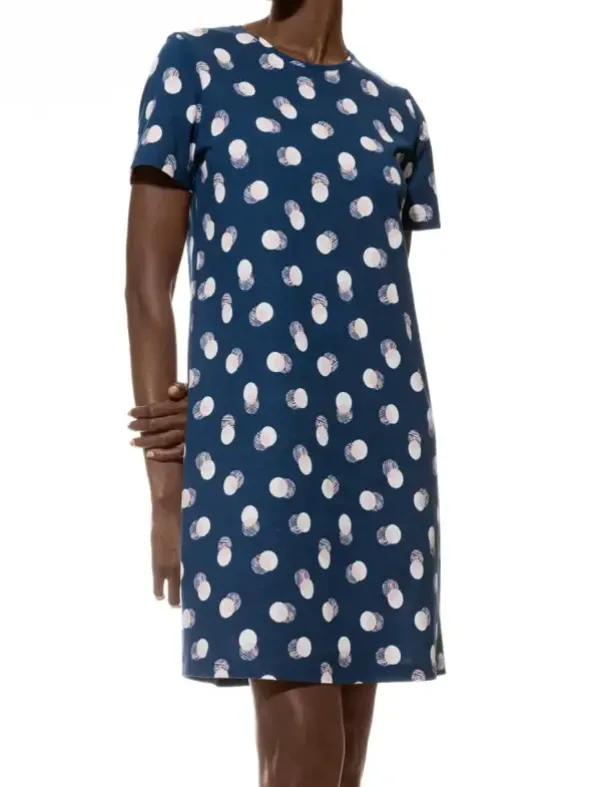 Dieses kurzärmelige Nachthemd aus der Serie „Scribbled Dots“ bietet eine legere Passform und einen farbenfrohen Punkteprint, der für gute Laune sorgt. Der gerippte Rundhalsausschnitt und die knielange Länge machen es zu einer bequemen Wahl für jede Nacht. Hergestellt aus 100% Baumwolle in Single-Jersey-Qualität, ist dieses Nachthemd weich, atmungsaktiv und angenehm zu tragen.