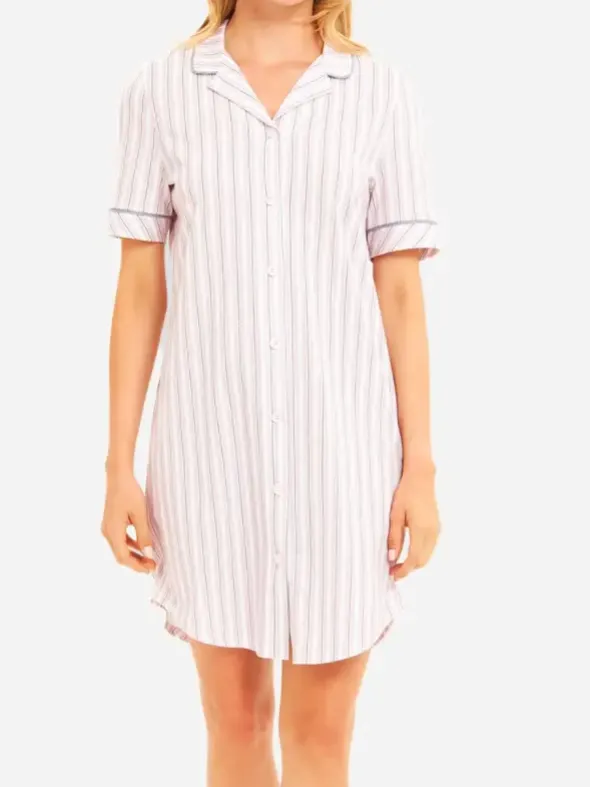 Das Rösch Kurzarm-Nachthemd aus 100% Baumwolle bietet klassischen Stil und höchsten Komfort für die Nacht. Mit einer knieumspielenden Länge von 90 cm und einem durchgehenden Knopfverschluss ist es sowohl praktisch als auch elegant. Der feine Reverskragen und die dezente Paspelierung verleihen dem Nachthemd eine stilvolle Note, die durch den edlen Streifenprint perfekt ergänzt wird. Der weiche Jersey-Stoff sorgt für ein angenehmes Tragegefühl und lässt die Haut atmen. Ein zeitloses Design für Damen, die eine Kombination aus Stil und Komfort schätzen.