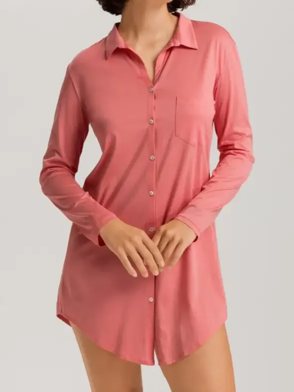 Dieses modisch-elegante Schlaf-Shirt aus 100 % merzerisierter Pima-Baumwolle kombiniert klassischen Stil mit höchsten Tragekomfort. Das Hemd im klassischen Design überzeugt mit einem Hemdkragen, einer durchgehenden Knopfleiste und einer praktischen Brusttasche, die sowohl funktional als auch ästhetisch ist. Die leichte A-Linie und der abgerundete Saum sorgen für eine bequeme Passform und optimale Bewegungsfreiheit. Der leichte Single Jersey aus Supima Baumwolle mit Soft-Merzerisierung bietet ein unglaublich angenehmes Tragegefühl. Mit seiner eleganten, aber dennoch sportlichen Optik ist dieses Nachthemd ideal für einen luxuriösen Schlaf und entspannte Nächte.