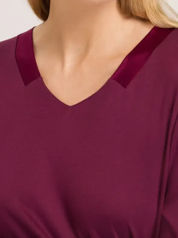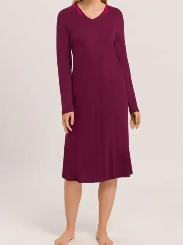 Ein eleganter und zugleich puristischer Nachtwäschelook erwartet Sie mit dem Langarm Nachthemd Joela aus der neuen Kollektion von HANRO. Durch die legere Passform mit 110cm Länge und den weich fallenden Interlock aus Baumwolle und Modal entsteht ein besonders angenehmes Tragegegfühl. Für eine edle Optik sorgen die sanft schimmernden, elastischen Seidenelemente am Halsausschnitt.
