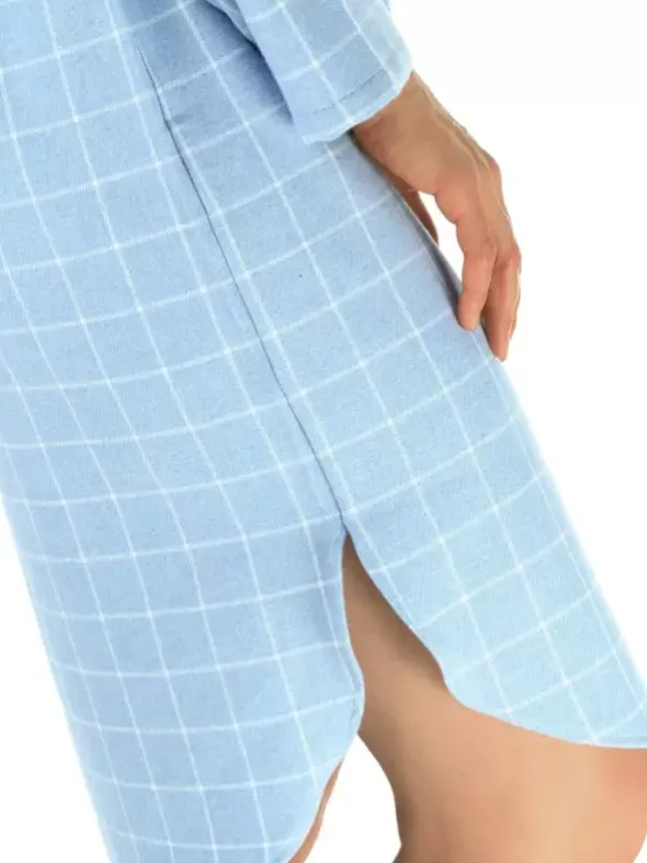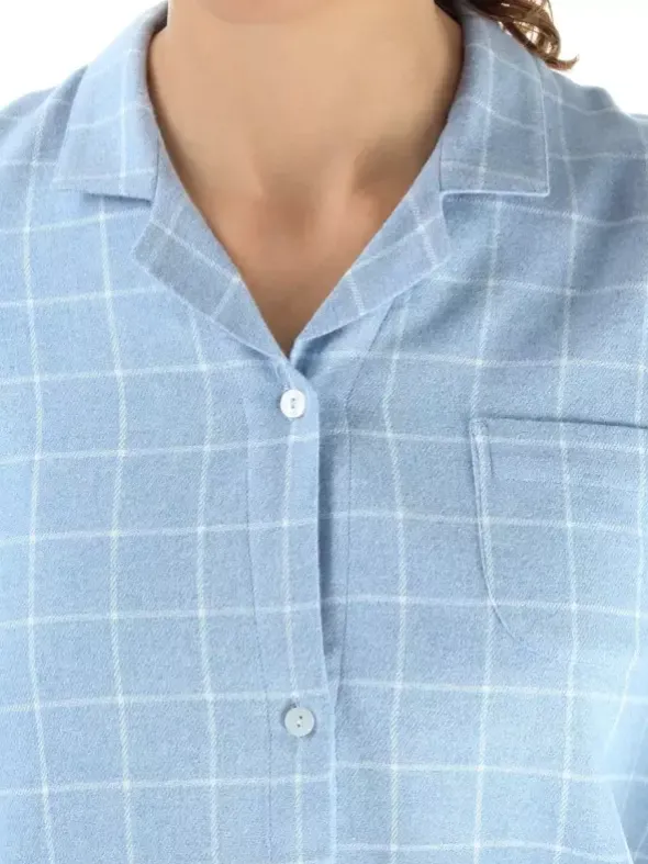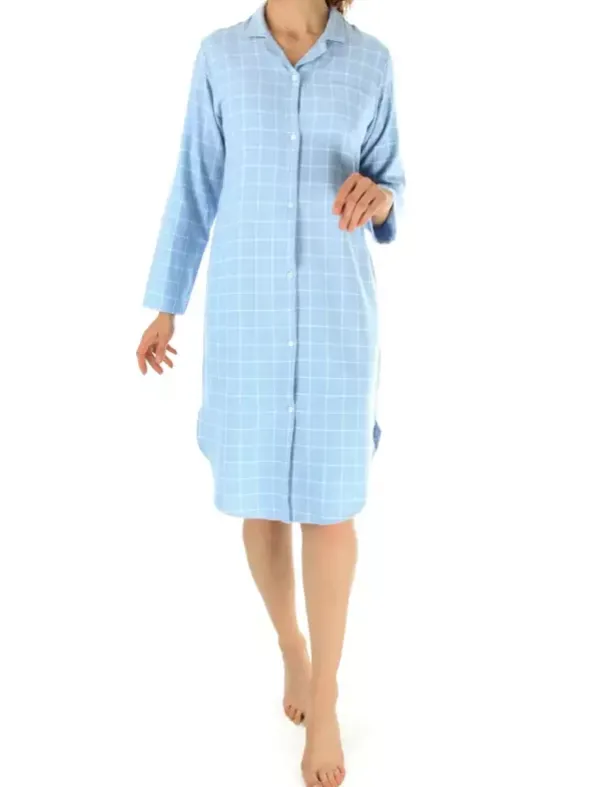 In kuschelig weichem Vollzwirn-Flanell präsentiert NOVILA das klassische Nachthemd Marina mit Karomuster in Weiß und Blau. Der dicht gewebte und flauschig geraute Stoff begleitet Sie zuverlässig durch kältere Nächte. Die durchgehende Knopfleiste und die bequeme Länge von 105cm sorgen für besten Tragekomfort. Die aufgesetzte Brusttasche und der eckige Reverskragen kreieren einen stilvollen Auftritt. Gehen Sie keine Kompromisse ein, wenn es um Ihr Wohlbefinden geht und entscheiden Sie sich für mit diesem Nightdress für eine exquisite Verarbeitung, ausgewählte Rohstoffe und höchsten Tragekomfort.