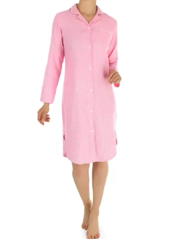 Das klassische Nachthemd Malene hier in kuschelig weichem Vollzwirn-Flanell. Der dicht gewebte Stoff ist innen und außen angeraut und somit ein treuer Begleiter für die kalte Jahreszeit. Die durchgehende Knöpfung wird edel ergänzt durch eine Paspelierung am runden Reverskragen und der aufgesetzten Brusttasche. Die bequeme Länge von 105cm verspricht kompromisslose Gemütlichkeit. Entscheiden Sie sich für höchsten Tragekomfort und eine exquisite Verarbeitung mit diesem schickem NOVILA Nachthemd.