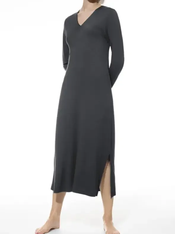 Das langärmelige Nachthemd aus der Serie Pure Chic überzeugt durch sein 120 cm langes, weich fließendes Design aus schimmerndem Modalgewebe. Der V-Ausschnitt und die v-förmige Brustnaht sorgen für eine taillierte Passform, die eine feminine Silhouette betont. Dezente seitliche Schlitze verleihen dem Nachthemd einen eleganten und komfortablen Look.