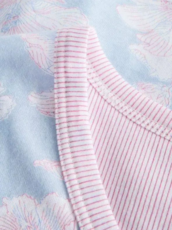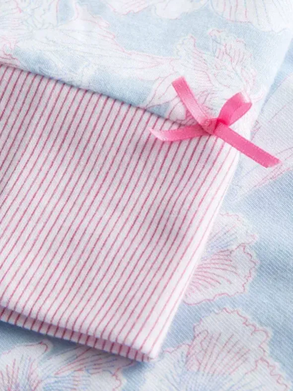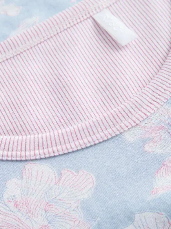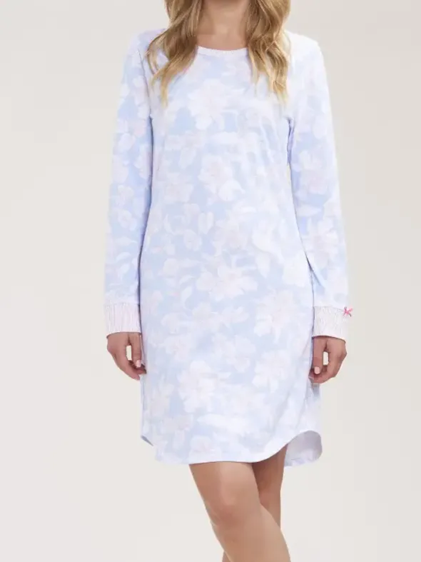 Klassisch geschnittenes Bigshirt aus weichem Single Jersey. Das 90cm lange Nachthemd gibt es hübsch gemustert mit farblich abgesetzten Blenden. Am linken Ärmel ist eine zarte Zierschleife angebracht. Der Saum ist seitlich abgerundet und schafft so zusätzliche Bewegungsfreiheit.