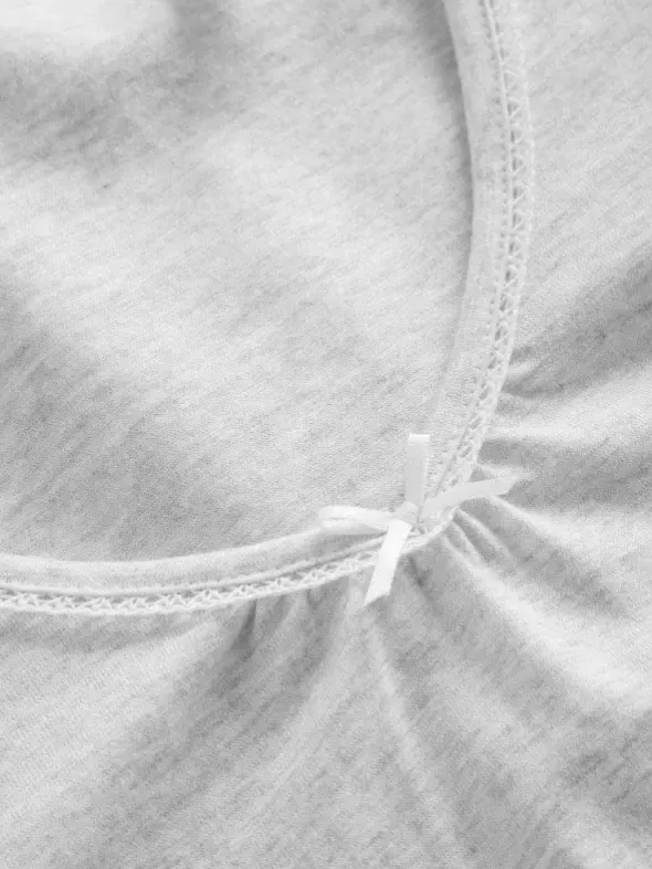 Das unifarbene Nachthemd von Rösch verzaubert mit seiner schlichten Eleganz. Gefertigt aus einem weichen Single-Jersey, liegt es dank des lockeren Schnitts angenehm schmeichelhaft auf der Haut. Der sanfte V-Ausschnitt ist mit einer femininen Spitzenborte und einer kleinen Zierschleife versehen. Vom Dekolleté abgehend ist der Stoff in leichte Falten gelegt. Der abgerundete Saum vollendet den unkomplizierten Look.