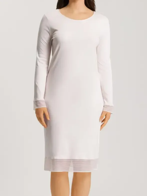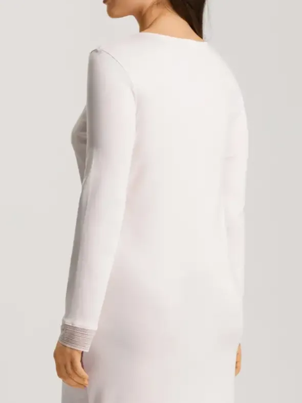 Dieses HANRO Nachthemd aus der Serie Sophie kombiniert langen Ärmel und femininen Spitzeneinsätzen an Ärmeln und Saum zu einem stilvollen Design. Gefertigt aus merzerisiertem Baumwoll-Interlock, bietet es höchsten Komfort und eine angenehme Leichtigkeit. Der bequeme Rundhalsausschnitt und die dekorative Spitze schaffen eine harmonische Verbindung von Komfort und Eleganz. Hergestellt aus 100 % Baumwoll-Stoff in Österreich, lädt dieses Nachthemd zu Entspannung und Ruhe ein, Tag und Nacht.
