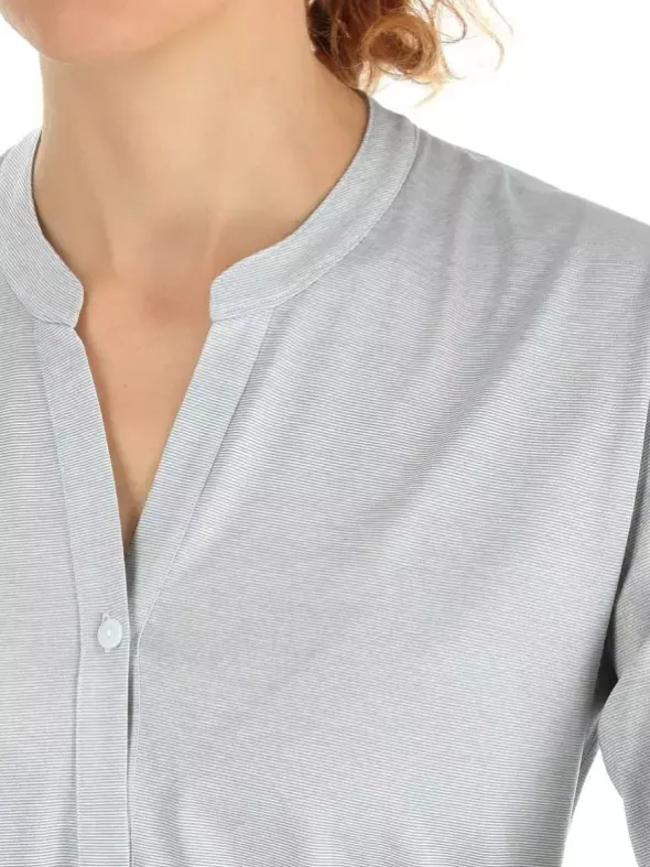 Das komfortable Nachthemd Luana von NOVILA ist der ideale Begleiter für erholsame Nächte. Er besteht aus 100% gasierter und merzerisierter Baumwolle in Feinzwirn, in bester Fil-à-Fil Qualität. Der leichte und bequeme Stoff ist mit der sanft taillierten Form und der knieumspielenden Länge von 95cm wunderbar hautumschmeichelnd. Noch dazu ist es sehr pflegeleicht. Die moderne Ausführung mit kurzem Stehkragen und leicht abgerundetem Saum vollendet diesen legeren Nachtwäsche-Look.