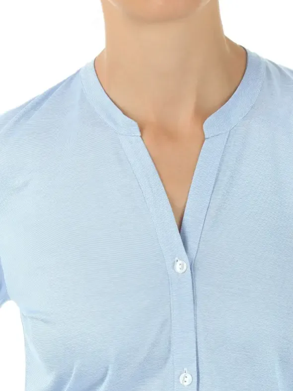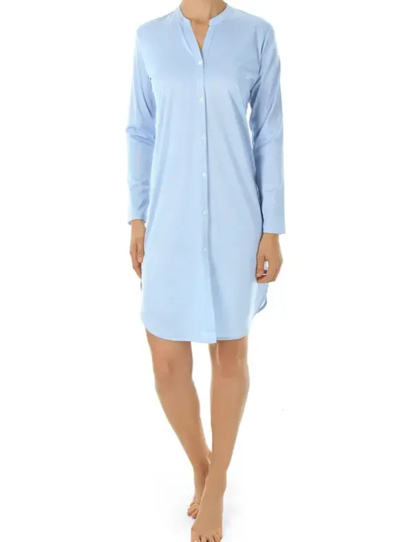 Das komfortable Nachthemd Luana von NOVILA ist der ideale Begleiter für erholsame Nächte. Er besteht aus 100% gasierter und merzerisierter Baumwolle in Feinzwirn, in bester Fil-à-Fil Qualität. Der leichte und bequeme Stoff ist mit der sanft taillierten Form und der knieumspielenden Länge von 95cm wunderbar hautumschmeichelnd. Noch dazu ist es sehr pflegeleicht. Die moderne Ausführung mit kurzem Stehkragen und leicht abgerundetem Saum vollendet diesen legeren Nachtwäsche-Look.
