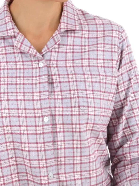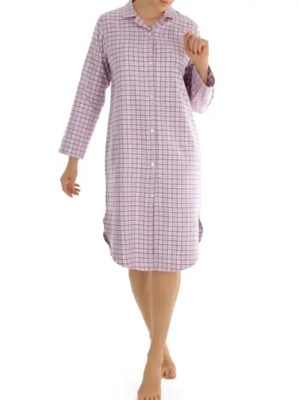 Das Nachthemd Marina ist aufgrund seiner durchgeknöpften Form und mit 105cm Länge eine sehr beliebte Schnittform. In diesem Design punktet das Revers-Hemd in einem voluminösen Vollzwirn-Flanell in eleganter Farbstellung von Grau und Rosa. Gefertigt aus reiner Baumwolle sorgt es für einen wärmenden und hautfreundlichen Tragekomfort und ist dabei pflegeleicht und unkompliziert.