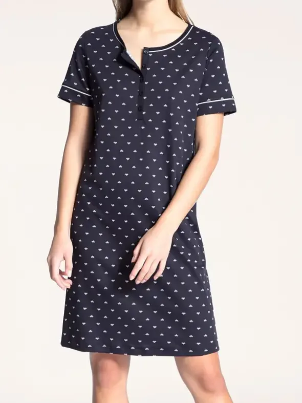Sleepshirt aus der Nachtwäsche-Basic-Serie NIGHT LOVER von CALIDA. Das Nachthemd mit kurzem Arm wurde aus 100% Supima®-Baumwolle gefertigt und lädt zum erholten Träumen ein. Die klassische Farbgebung rundet den Look ab.
