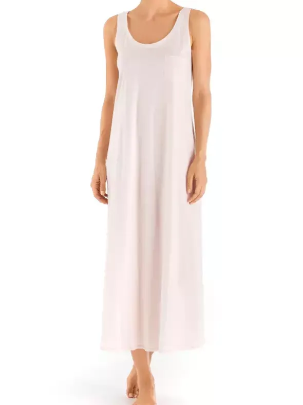 Klassisches HANRO Nachthemd ärmellos aus dem vielseitigen Nachtwäsche-Programm Cotton Deluxe. Das Damen Nightdress aus 100% mercerisierter Pima-Baumwolle überzeugt durch ein besonders weiches Tragegefühl, fließender Fall und einen natürlichen Glanz.