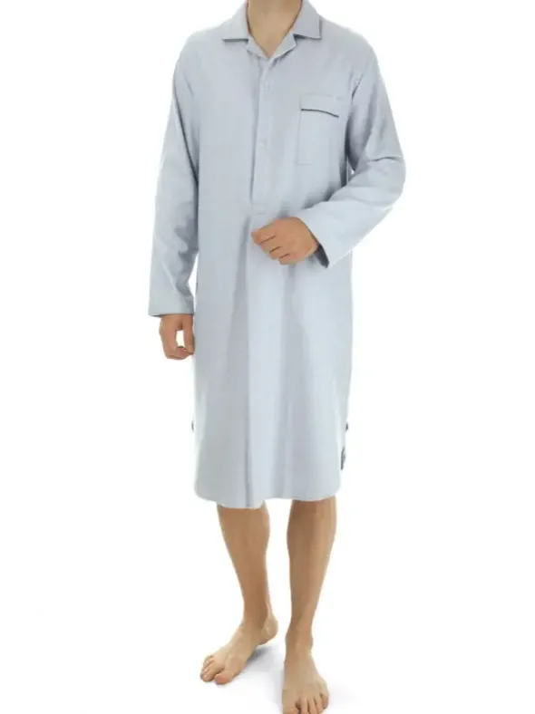 Das komfortable Herrennachthemd Paul aus der NOVILA Nachtwäschekollektion besteht aus besonders weichem Baumwoll-Flanell in Vollzwirnqualität. Die praktische Schlupfform mit halber Knopfleiste und der abgerundete Saum mit Seitenschlitzen sorgen für maximale Bewegungsfreiheit. Elegant abgerundet wird das Wäschestück durch edle Paspelierungen am Reverskragen und der aufgesetzten Brusttasche. Ein treuer und wärmender Begleiter für eine erholsame Nachtruhe.