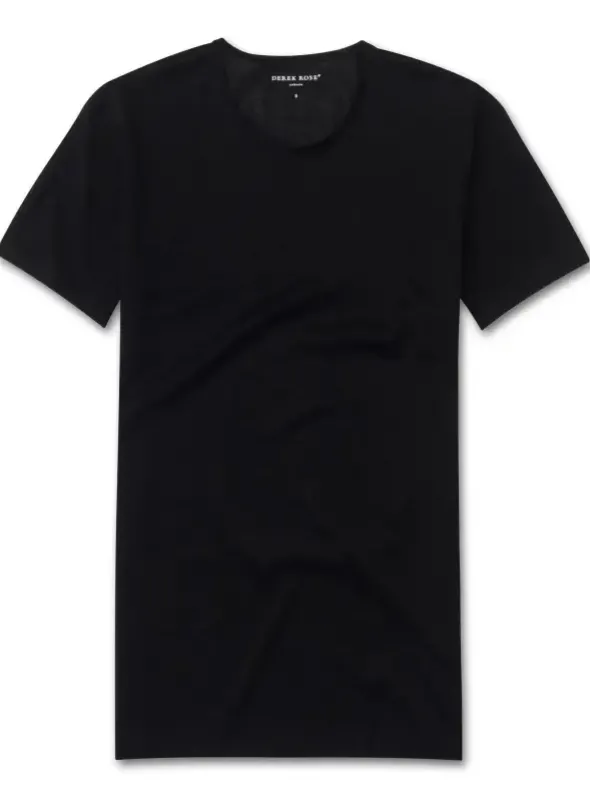 Herren Unterwäsche von Derek Rose London aus der Pure Cotton Serie Lewis – bequemes O-Shirt Kurzarm, in klassischem weiß oder schwarz erhältlich. Das Shirt ist aus feiner. lanstapeliger mercerisierter Baumwolle 100 gefertigt. Flache Nähte und super weiches Material sorgen für besten Komfort. Tolles Tragegefühl durch großzügigem Schnitt. Das Shirt ist mit einem Rundhals-Ausschnitt versehen.