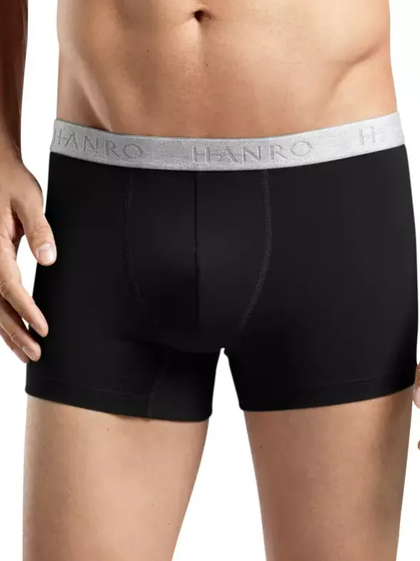 Mit den im Doppelpack erhältlichen Pants aus der Serie Cotton Essentials von HANRO beweisen Herren eine große Portion Stil. Im Fokus steht der HANRO-Logo-Webbund in Kontrastfarbe, der den sportiven Pants das gewisse Etwas verleiht. Sowohl in klassischen Farben als auch in aktuellen Modefarben sind die Wäschestücke derzeit verfügbar. Eines haben alle gemeinsam: Sie beeindrucken mit einer tollen Passform und einem exzellenten Tragekomfort.