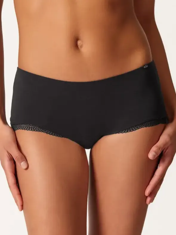 Diese hüftig geschnittene Damen-Pant bietet zuverlässigen Komfort rund um die Uhr – und das gleich im praktischen Doppelpack. Gefertigt aus hochwertigem Baumwoll-Stretch-Material, schmiegt sich die Unterwäsche angenehm an die Haut an. Die dekorative Spitze, die sanft zu den Beinöffnungen hin ausläuft, verleiht der Pant eine elegante Note. Ob Tag oder Nacht – diese zeitlose Unterwäsche ist ein wahrer Glücksgriff für stilbewusste Frauen, die Wert auf Bequemlichkeit und Design legen.