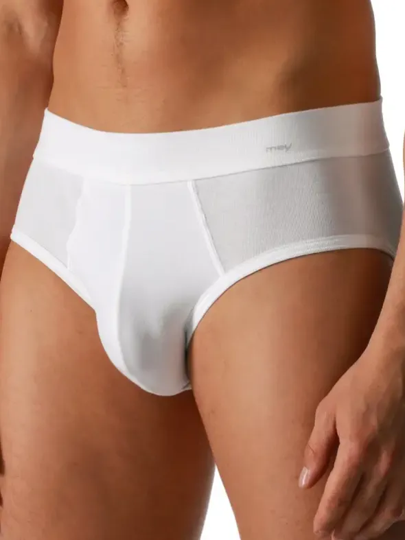 Mey Noblesse – hier ein bequemer Herren Sport Slip – in weiß erhältlich. Der Slip ist mit komfortablen Softbund, ohne Eingriff und in klassischer Schnittform aus einer reinen, supergekämmten PIMA Baumwolle in Feinlripp gefertigt. Die Mey Noblesse Serie trägt das Bluesign Product Label für Nachhaltigkeit im gesamten Produktionprozess.Mey