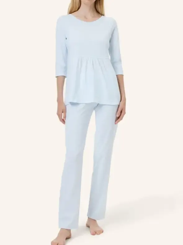 Verleihen Sie Ihren Nächten einen Hauch von Feminität mit dem Schlafanzug von Yellamaris, der ein elegantes Top im Princess-Stil bietet. Mit der raffinierten Teilungsnaht im Taillenbereich und den modernen ¾ Ärmeln entsteht eine ansprechende Silhouette. Die gerade, lange Hose mit Softbund sorgt für zusätzlichen Komfort und eine perfekte Passform. Gefertigt aus feinem Ringeljersey und zertifizierter Bio-Baumwolle, garantiert dieser Schlafanzug ein trockenes und angenehmes Hautgefühl. Die sorgfältige Produktion auf der schwäbischen Alb vereint hohe Qualität mit einem nachhaltigen Ansatz für bewusste Käufer.