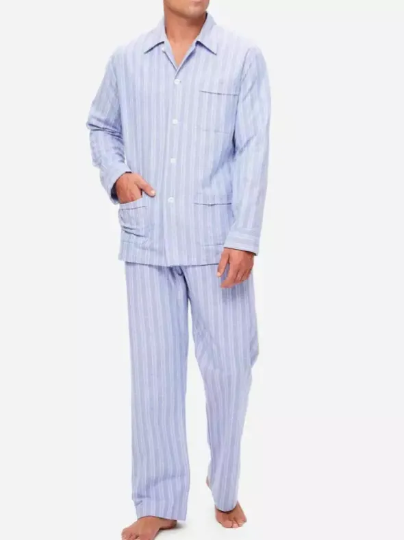 Der Pyjama Arran von Derek Rose überzeugt mit einer entspannten und bequemen Passform. Das klassische Oberteil ist mit 3 Taschen ausgestattet, der verstellbare Hosenbund verfügt über zwei Knöpfe und elastische Seitenteile. Dadurch bleiben Vorder- und Rückseite komfortabel flach. Der Zweiteiler ist ein wunderbarer Begleiter durch die kältere Jahreszeit. Die superweiche, und leichte Baumwolle ist gebürstet und erhält somit eine angenehm wärmende Eigenschaft. Ein langlebiger Begleiter für den qualitätsbewussten Herren.