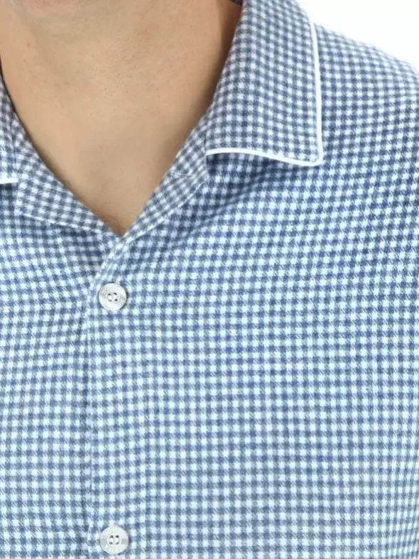 Der klassische Pyjama Ben von NOVILA in neuem Design der aktuellen Herbst/Winter Kollektion. Das weiche und wärmende Flanell-Gewebe in bester Vollzwirn-Qualität sorgt für luxuriösen Tragekomfort. Ein minimalistisches, blaues Karomuster passt sich geschmackvoll an die elegante Schnittform an. Hochwertige Paspelierungen an Kragen, Saum und Seitennahttaschen zeugen von Liebe zum Details und höchster Verarbeitungsqualität.