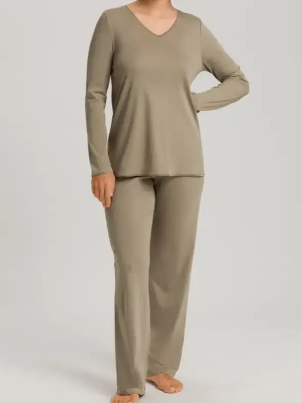 Der Cotton Silk Pyjama von HANRO vereint schlichte Eleganz mit höchsten Ansprüchen an Qualität und Tragekomfort. Gefertigt aus 100 % merzerisiertem Baumwollinterlock, bietet dieses Set eine außergewöhnlich weiche Haptik, brillanten Glanz und langanhaltende Strapazierfähigkeit. Seideneinfassungen an V-Ausschnitt, Ärmeln und Saum verleihen dem Design eine luxuriöse Note und machen den Zweiteiler zu mehr als nur Nachtwäsche. Ob für entspannte Stunden zu Hause oder als stilvoller Begleiter im Sommerurlaub – dieses Pyjama-Set überzeugt mit puristischem Chic und natürlicher Leichtigkeit. Ein exklusives Must-have für Frauen, die in jeder Situation Komfort und Eleganz vereinen möchten.