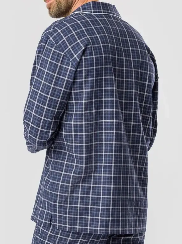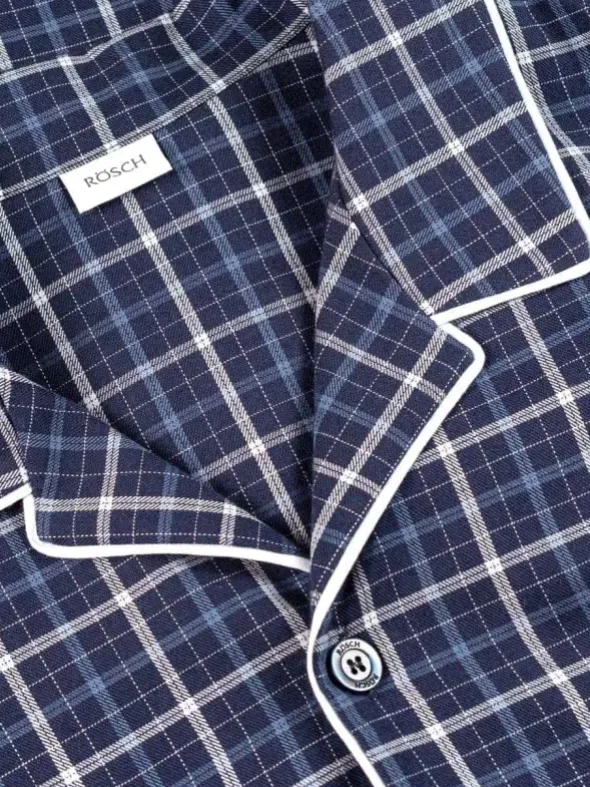Der Rösch Herren-Pyjama aus weichem Twill bietet luxuriösen Komfort und klassischen Stil für entspannte Nächte. Hergestellt aus 100% Baumwolle, sorgt er für ein angenehmes Hautgefühl und eine hochwertige Optik. Der durchgeknöpfte Pyjama ist mit einem eleganten Reverskragen, einer aufgesetzten Brusttasche und feiner Paspelierung versehen. Die gerade geschnittene Hose mit elastischem Bund gewährleistet eine bequeme Passform. Ein stilvoller Pyjama für Herren, die auch nachts Wert auf Qualität und Eleganz legen.