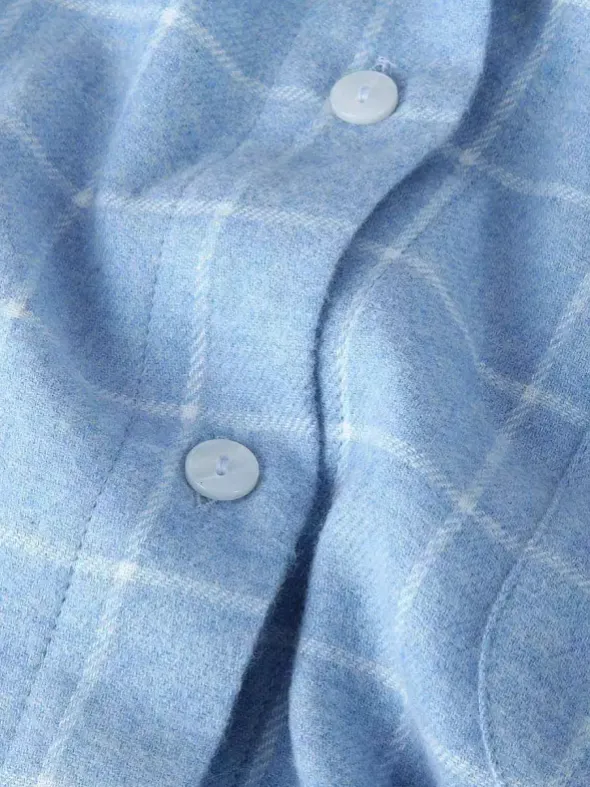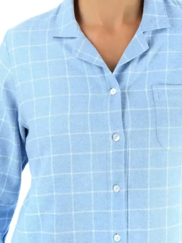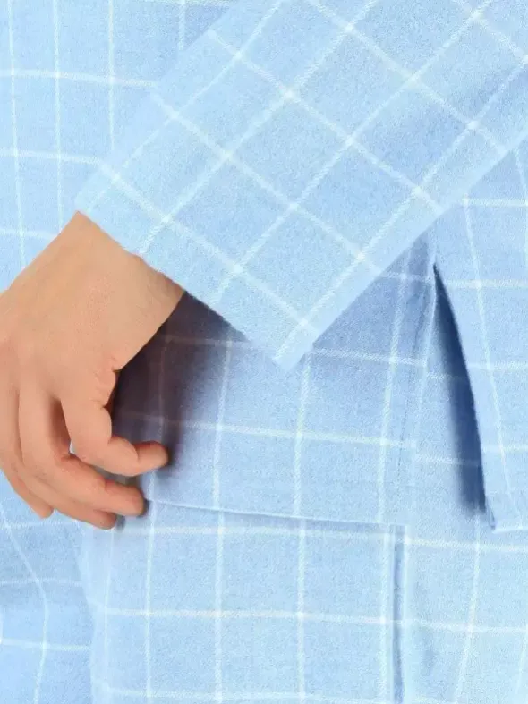 In kuschelig weichem Vollzwirn-Flanell präsentiert NOVILA den beliebten Pyjama Helena mit klassischem Karomuster in Weiß und Blau. Der dicht gewebte und flauschig geraute Stoff begleitet Sie zuverlässig durch kältere Nächte. Der patentierte NOVILA Softbund mit Tunnelzug und die Seitennahttaschen der geraden Hose sorgen für praktischen Komfort. Das durchgeknöpfte Oberteil mit aufgesetzter Brusttasche und eckigem Reverskragen sorgt für einen stilvollen Auftritt. Gehen Sie keine Kompromisse ein, wenn es um Ihr Wohlbefinden geht und entscheiden Sie sich für mit diesem Zweiteiler für eine exquisite Verarbeitung, ausgewählte Rohstoffe und höchsten Tragekomfort.