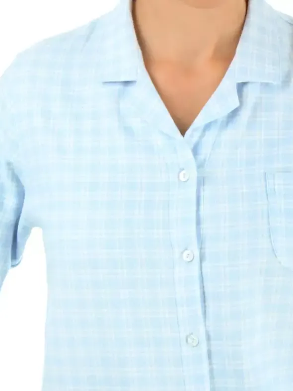 Der komfortable Damenpyjama Helena in zeitlosem Karomuster ist ein wärmender und schmeichelhafter Nachtwäschelook. Ein kuschelig angerauter Baumwollflanell in Vollzwirnqualität schafft ein unvergleichliches Hautgefühl. Die elegante Optik zeichnet sich durch das klassisch geknöpfte Oberteil mit Reverskragen und eine gerade geschnittene Hose mit Softbund und Bindeband aus. Ein femininer Look für entspannte Momente.