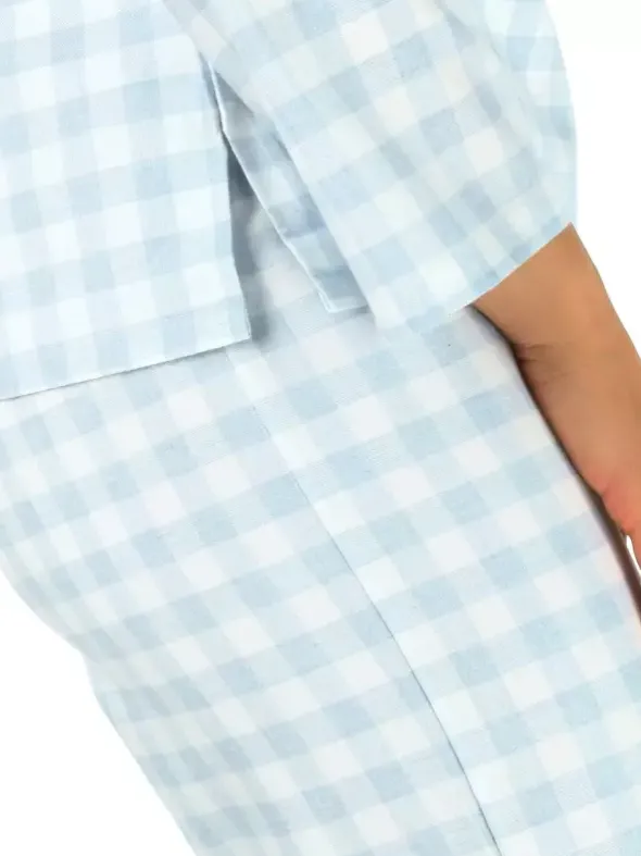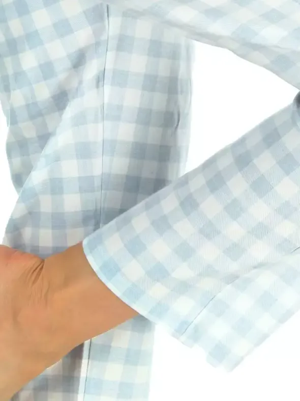 Von NOVILA in bester Qualität gefertigt – der beliebte Pyjama Helena in klassischer Schnittform. In der aktuellen Saison ist Dieser in einem robustem, dehnbaren Baumwoll-Twill in frischem Karolook erhältlich. Das weiche und griffige Gewebe ist wunderbar pflegeleicht und überzeugt gleichzeitig mit bestem Tragekomfort. Für eine elegante Abrundung sorgen der spitze Reverskragen und die aufgesetzte Brusttasche. Die gerade geschnittene Hose ist mit dem patentiertem NOVILA Softbund für absolute Bequemlichkeit ausgestattet.