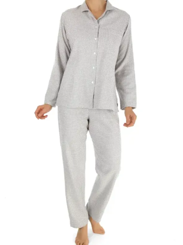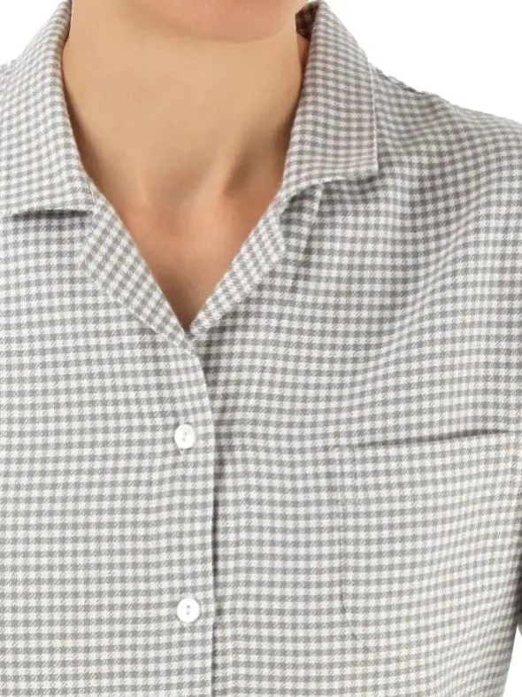 Gönnen Sie sich mit dem beliebten NOVILA Pyjama Helena einen komfortablen Nachtwäschelook für kältere Tage. Hier mit elegantem Karomuster in der Farbe taupe. Das kuschelig weiche, beidseitig geraute Flanellgewebe ist aus reiner Baumwolle in Vollzwirn-Qualität gefertigt. Das klassisch geschnittene Reversoberteil mit aufgesetzter Brusttasche wird hier zu einer geraden Hose mit Bindeband und bequemen Softbund kombiniert. Neben der perfektionierten Passform wird Sie auch die herausragende Verarbeitung begeistern.