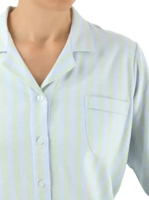 Gönnen Sie sich mit dem beliebten NOVILA Pyjama Helena einen komfortablen Nachtwäschelook für kältere Tage. Das kuschelig weiche, beidseitig geraute Flanellgewebe ist aus reiner Baumwolle in Vollzwirn-Qualität gefertigt. Das klassisch geschnittene Reversoberteil mit aufgesetzter Brusttasche wird hier zu einer geraden Hose mit Bindeband und bequemen Softbund kombiniert. Neben der perfektionierten Passform wird Sie auch die herausragende Verarbeitung begeistern.