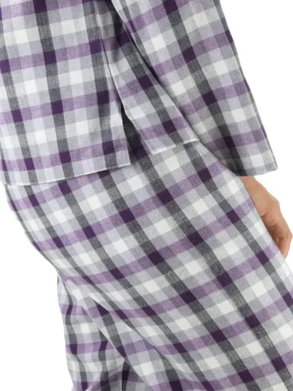 Mit der neuen Herbst/Winter-Kollektion von NOVILA erwartet Sie der beliebte Damenpyjama Helena in einem modischen Karomuster. Das beidseitig geraute Flanellgewebe aus reiner Baumwolle sorgt für einen weichen und sanft wärmenden Tragekomfort. Dank der klassischen Reversform mit spitzem Kragen, durchgehender Knopfleiste und aufgesetzter Brusttasche entsteht eine elegante Optik. Die gerade geschnittene Hose überzeugt zudem mit einem druckfreien und patentierten Softbund.