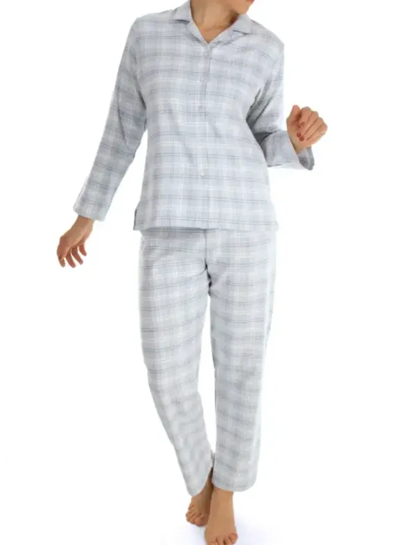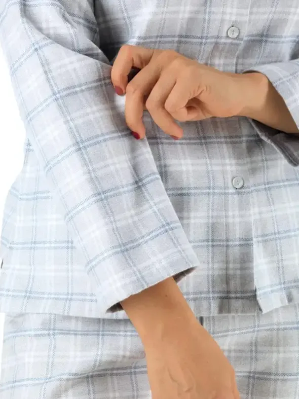 Der NOVILA Pyjama Helena punktet in diesem Design mit einer zurückhaltenden Ästhetik in edlem silbergrau. Der voluminöse Vollzwirn-Flanell verwöhnt Sie mit einem wärmend weichen Tragekomfort und ist dank der Fertigung aus 100% Baumwolle besonders hautfreundlich und pflegeleicht. Die klassische Revers-Schnittform vereint eine durchgeknöpfte, geschlitzte Jacke mit einer schmal zulaufenden Hose mit dem bewährten NOVILA Softbund.