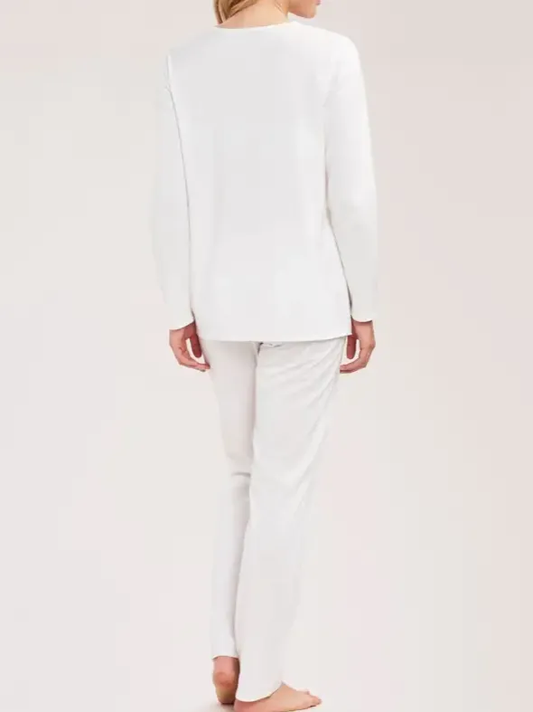 Klassischer Damenpyjama mit durchgeknöpftem Reversoberteil von Féraud. Der Schlafanzug ist aus hochwertiger Baumwolle gefertigt und bietet dank des lockeren Schnitts einen wunderbaren Tragekomfort.