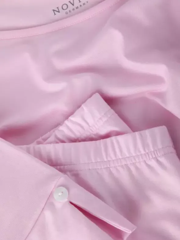 Der klassische Zweiteiler Jana von NOVILA ist der ideale Begleiter für erholsame Nächte. Er besteht aus einem hochwertigen Baumwolle-Viskose Mix mit geringem Elasthananteil. Die glatt fließende und hautsympathische Oberfläche sorgt für besten Tragekomfort. Das leicht tailliert geschnittene Langarm Oberteil ist mit einem Rundhalsausschnitt, Seitenschlitzen und Manschettenbündchen mit Knöpfen versehen. Die lange Hose überzeugt durch einen bequemen und elastischen Bund und einen komfortablen, schmal zulaufenden Schnitt. NOVILA steht für exquisite Verarbeitung und sorgfältig ausgewählte Rohstoffe – überzeugen Sie sich selbst von dieser kompromisslos gemütlichen Nachtwäsche.