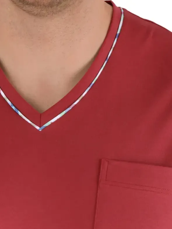Der kurze Herren Pyjama Alexander von NOVILA kombiniert den Komfort eines Jersey Oberteils mit der zeitlosen Eleganz einer Webhose. Die Jerseyjacke besticht durch ihren V-Ausschnitt mit Web-Paspel und eine Brusttasche, die praktische Akzente setzt. Eine Rückenpasse aus Web und die hochwertige Baumwollqualität sorgen für ein weiches, formstabiles Tragegefühl. Die Webhose im Karo Popeline-Design hält dank Novila-Bund und Aufhänger sicher und unkompliziert. Dieses Mixpyjama-Set überzeugt durch seinen angenehmen Sitz, die edle Optik und die sorgfältige Verarbeitung.