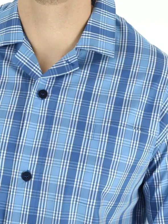 Der sommerliche Kurzpyjama Marco besticht hier in einer Ausführung aus Popeline. Das glatte und dichtmaschige Gewebe liegt wunderbar schmeichelnd auf der Haut und sorgt für eine erholsame Nachtruhe. Das durchgeknöpfte Oberteil wird mit einem klassischen Reverskragen und aufgesetzten Taschen abgerundet. Dazu kombiniert die kurze Hose mit softem NOVILA-Bund – ein exquisiter Zweiteiler in höchster Verarbeitungsqualität.