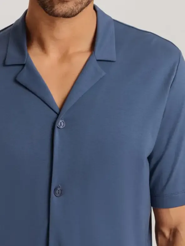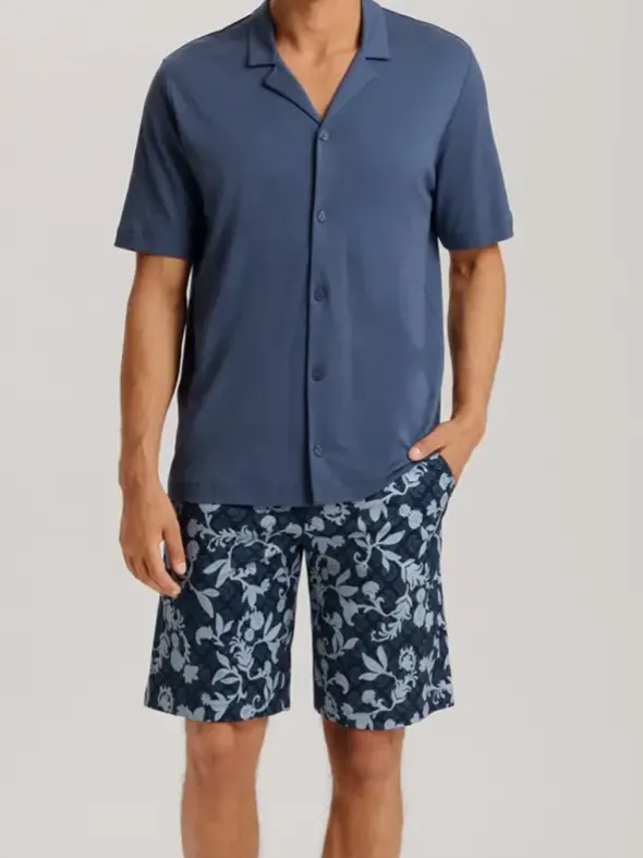 Das Pyjama Set – Night & Day von HANRO kombiniert höchsten Komfort mit einem modernen, maskulinen Design. Aus 100 % Baumwolle gefertigt, bietet dieses Set aus weichem Interlock-Stoff luxuriösen Tragekomfort. Das kurze Pyjama-Oberteil mit Kragen und Knöpfen sorgt für einen klassischen Look, während die kurze Schlafhose mit praktischen seitlichen Taschen für zusätzlichen Komfort sorgt. Ideal für entspannte Nächte oder Reisen – dieses Pyjama Set erfüllt höchste Ansprüche und bietet den ganzen Tag über Komfort und Stil.