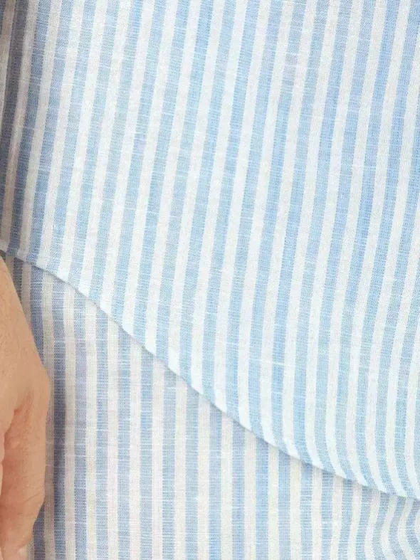 Der Kurzpyjama Theo von NOVILA kombiniert den kühlen Komfort von Leinen mit der Weichheit von Baumwolle. Dank des edlen Streifenmusters in Hellblau erhält das Set eine maritime Note. Die Jacke verfügt über einen Stehkragen und einen abgerundeten Saum, wodurch sie modern und zugleich lässig wirkt. Die kurze Hose mit Novila-Bund sorgt für eine bequeme Passform und lässt sich flexibel anpassen. Mit seinen temperaturregulierenden Eigenschaften ist dieser Pyjama ein idealer Begleiter für warme Sommertage.
