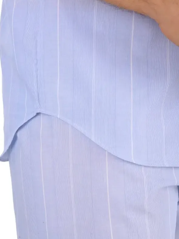 Der NOVILA Herren Pyjama kurz Theo bringt frischen Wind in die Sommernachtwäsche mit seinem irregulären Streifendesign. Die Jacke verfügt über einen dezenten Stehkragen, der ihr einen modernen Look verleiht. Ein abgerundeter Saum unterstreicht die lässige Note, während die kurze Hose mit Novila-Bund für optimale Bewegungsfreiheit sorgt. Reine Baumwolle in Popeline-Qualität garantiert ein angenehmes Tragegefühl, auch an heißen Tagen. Hier trifft elegante Schlichtheit auf erstklassige Verarbeitung.