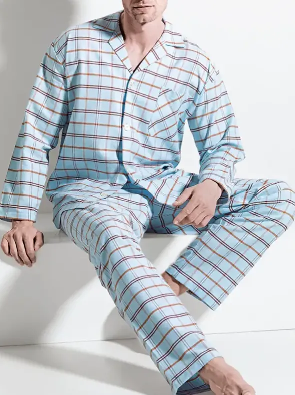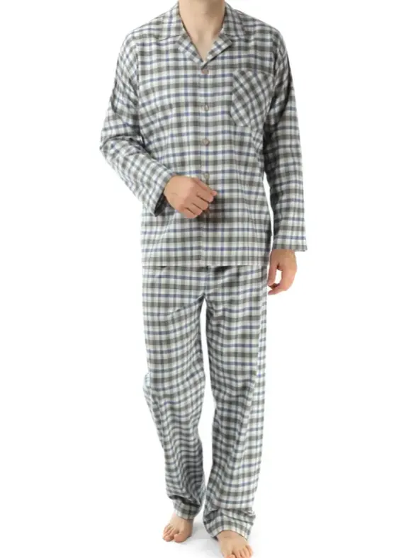 ISA Herren Flanell Schlafanzug aus der Serie Night and Home – eleganter Pyjama mit aufgesetzter Brusttasche und durchgehender Knopfleiste im modischen Karomuster. Die ISA Nightwear besticht durch hohe Qualität und akkurate Verarbeitung. Verwöhnen Sie sich mit diesem Herren Pyjama und genießen Sie den erstklassigen Tragekomfort.